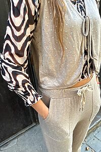 Ideal pantalón bermudas súper tendencia. Tacto muy agradable y tejido calentito interior, también es algo elástico. Es corte recto y lleva cinturón con hebilla dorada.