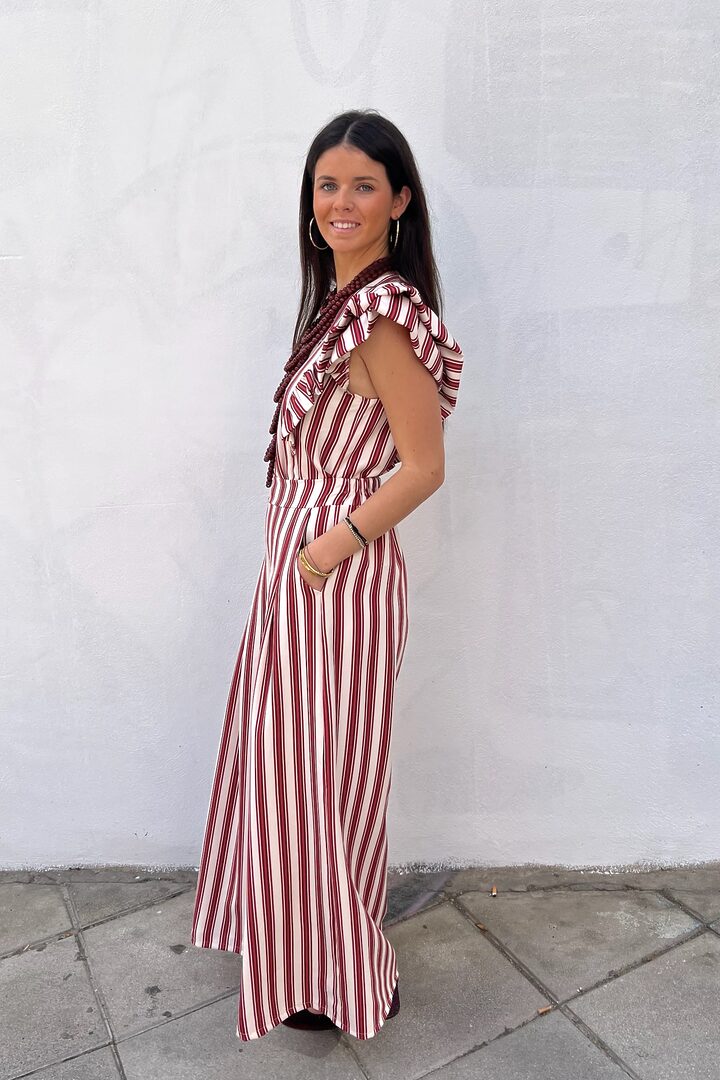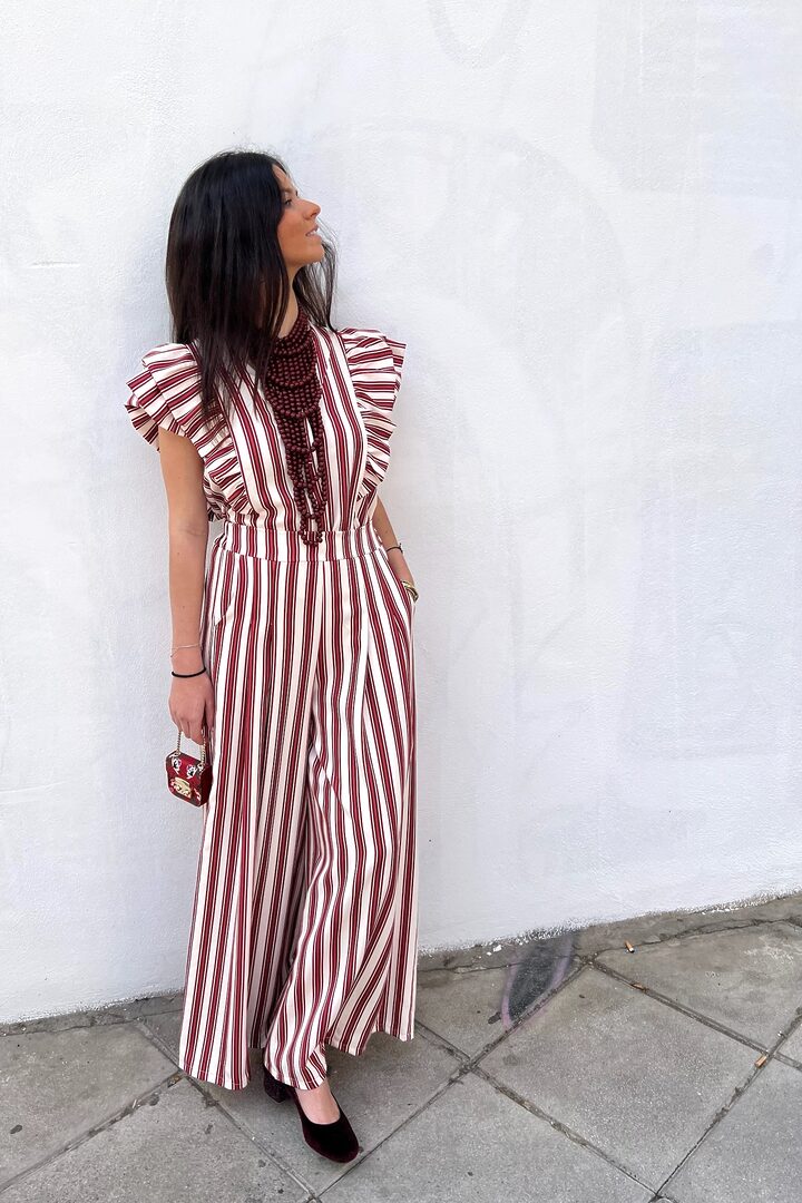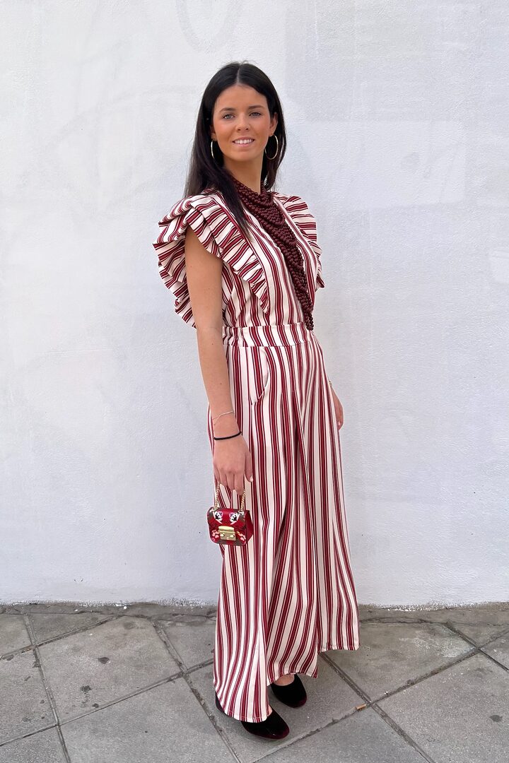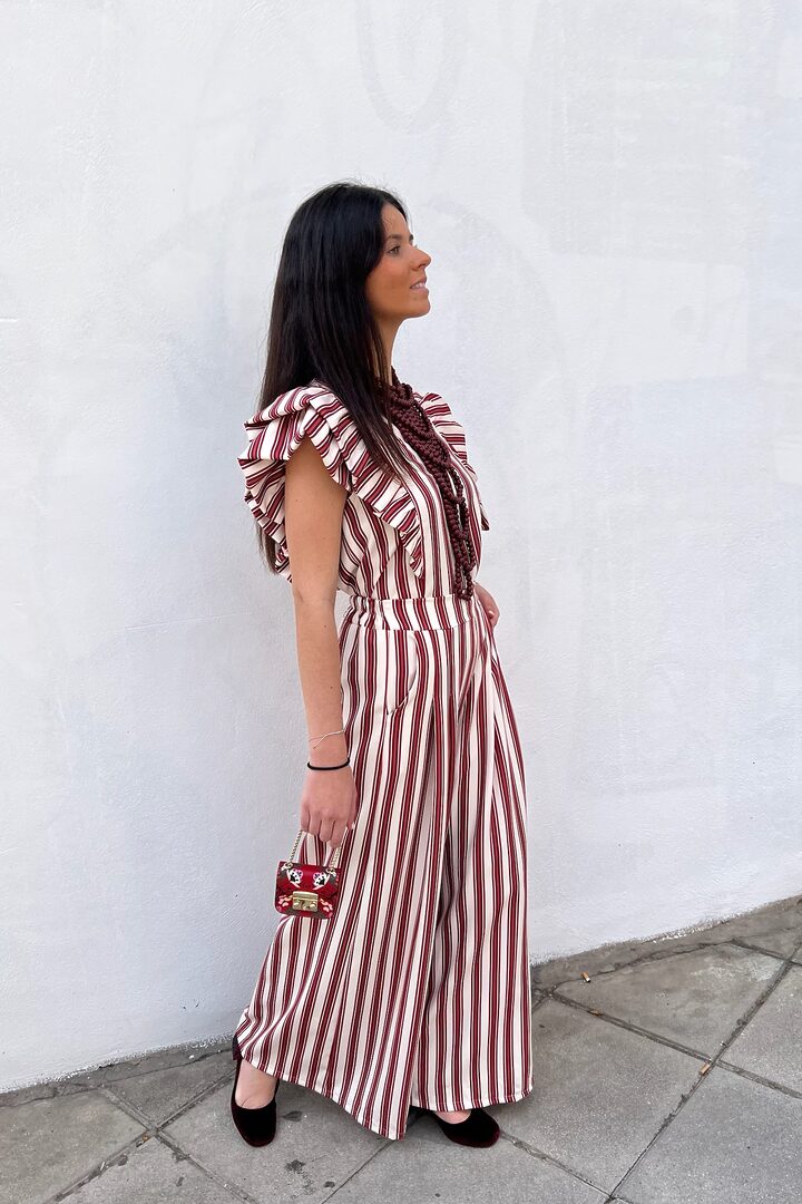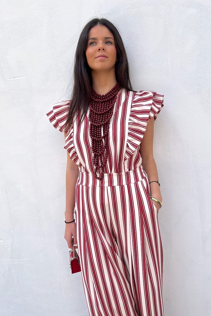 Conjunto Maripi. Set de dos piezas muy favorecedor y versátil. Ideal para día especial o para el día a día. Tejido de tacto muy suave que no necesita plancha. Lleva algo de elastano también. Top corte chaleco con cierre de botones y lleva pinzas en el pecho. Pantalón corte palazzo con bolsillos y elástico en cintura trasera.
