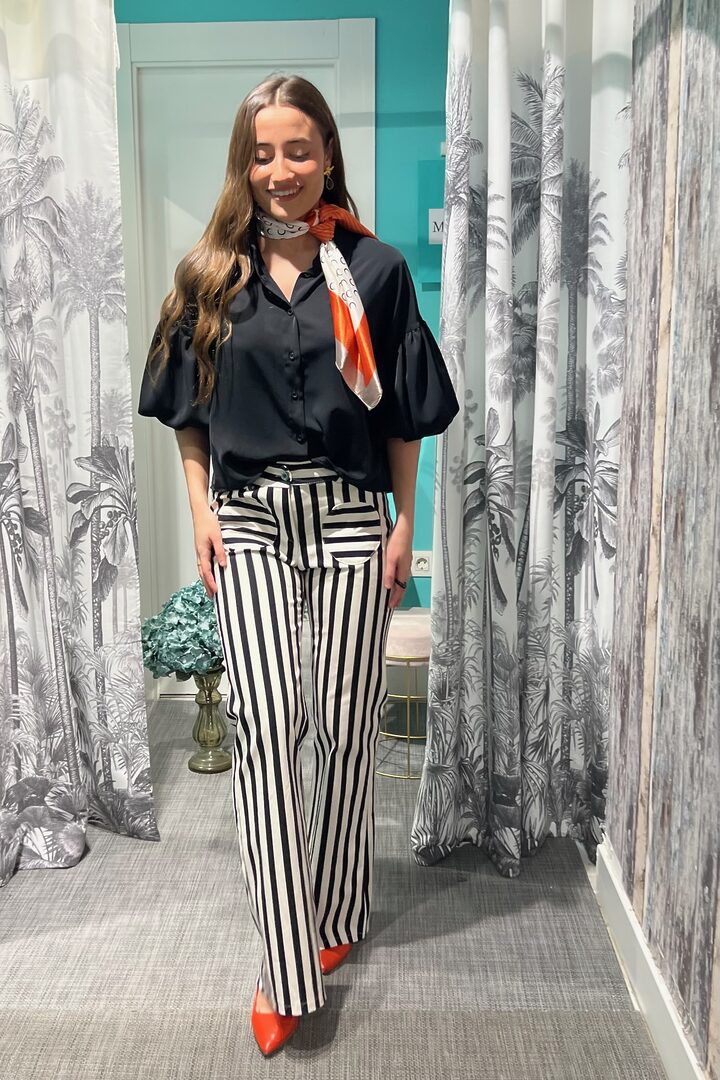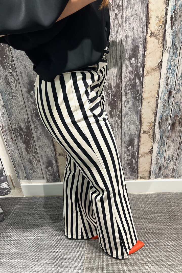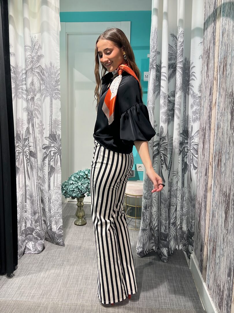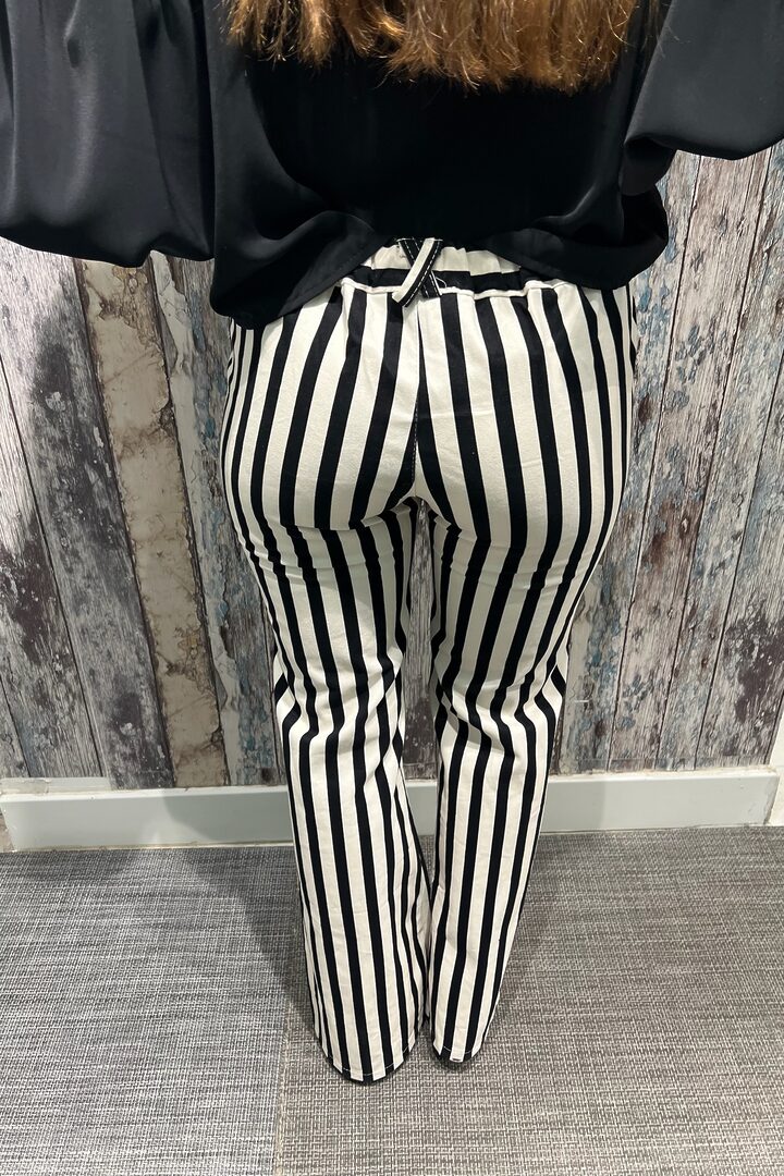 Pantalón Black Alexis. Tejano de original estampado súper tendencia, y con elastano. Corte flare, con elástico en cintura trasera para mejor ajuste a varias tallas. Bolsillos decorativos.