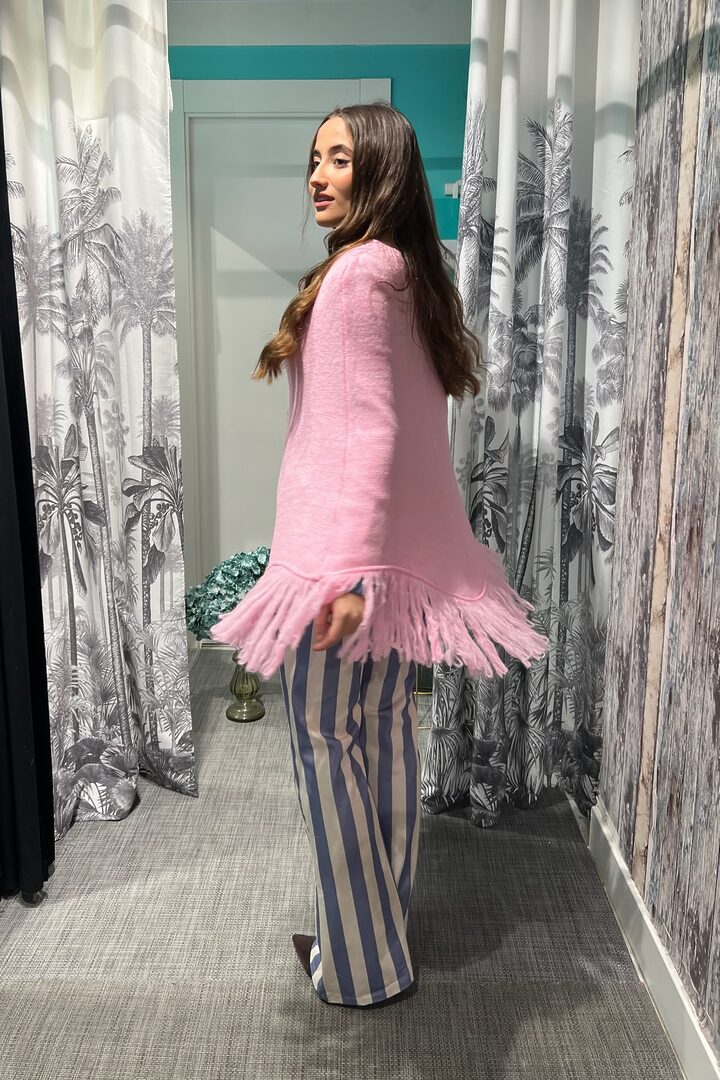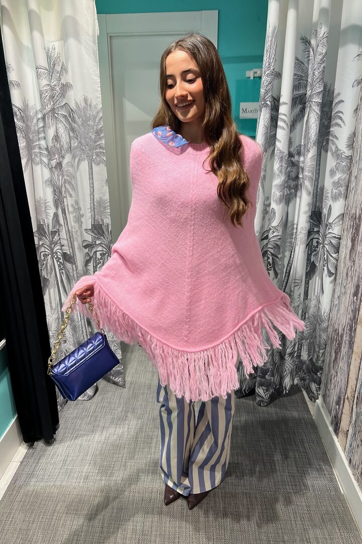 Poncho Pink Moon. Poncho tejido de original diseño cerrado, con cuello a la caja y dibujo de espiga central. Es de punto y se adapta a varias tallas.