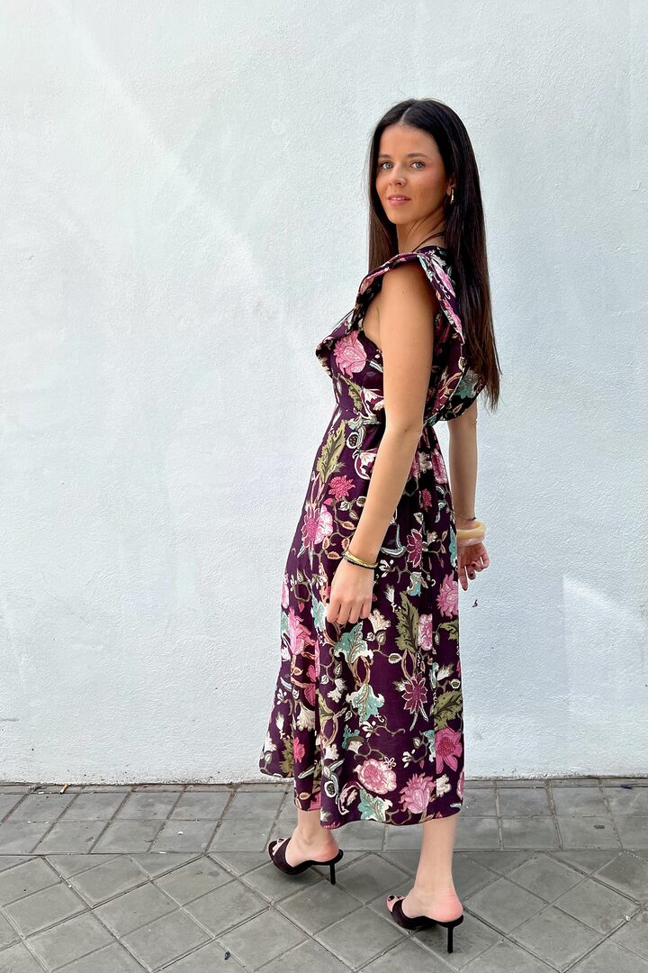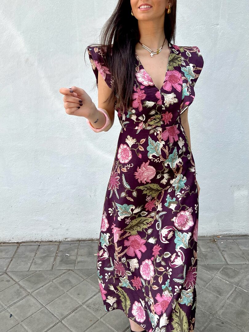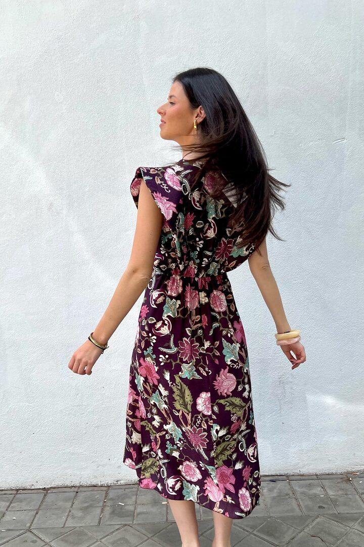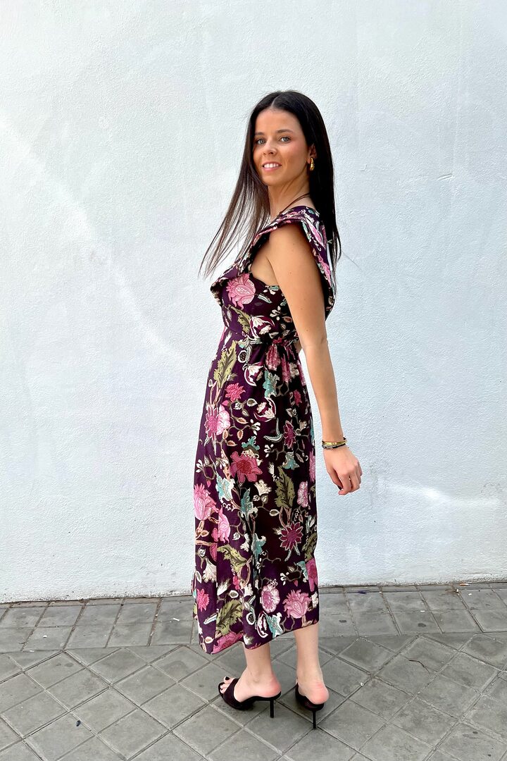 Vestido Carmen Burgundy. Ideal para evento o día especial, vestido sencillo pero muy elegante. Largo midi, falda corte evasé, lleva elástico en parte trasera del vestido para entallar la cintura a varias tallas. Corte superior muy favorecedor con escote pico, pinzas y baberos en hombros que realzan la silueta.